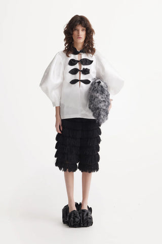 Romantic Silk Organza Blouse With Balloon Sleeves – Bright Green