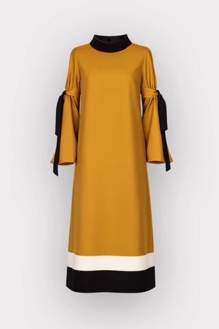 Rochie midi dreaptă de designer cu mâneci despicate - muștar-negru