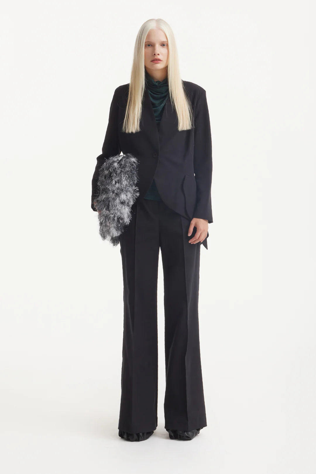 Cu talie înaltă și linii largi evazate din șold, acești pantaloni alungesc silueta și creează o estetică puternică și feminină. Ideali pentru întâlniri de afaceri, evenimente formale sau ținute de zi cu zi rafinate, trec cu ușurință de la o ocazie la alta. Asortează-i cu o bluză cambrată sau un sacou structurat pentru un look sofisticat și versatil.