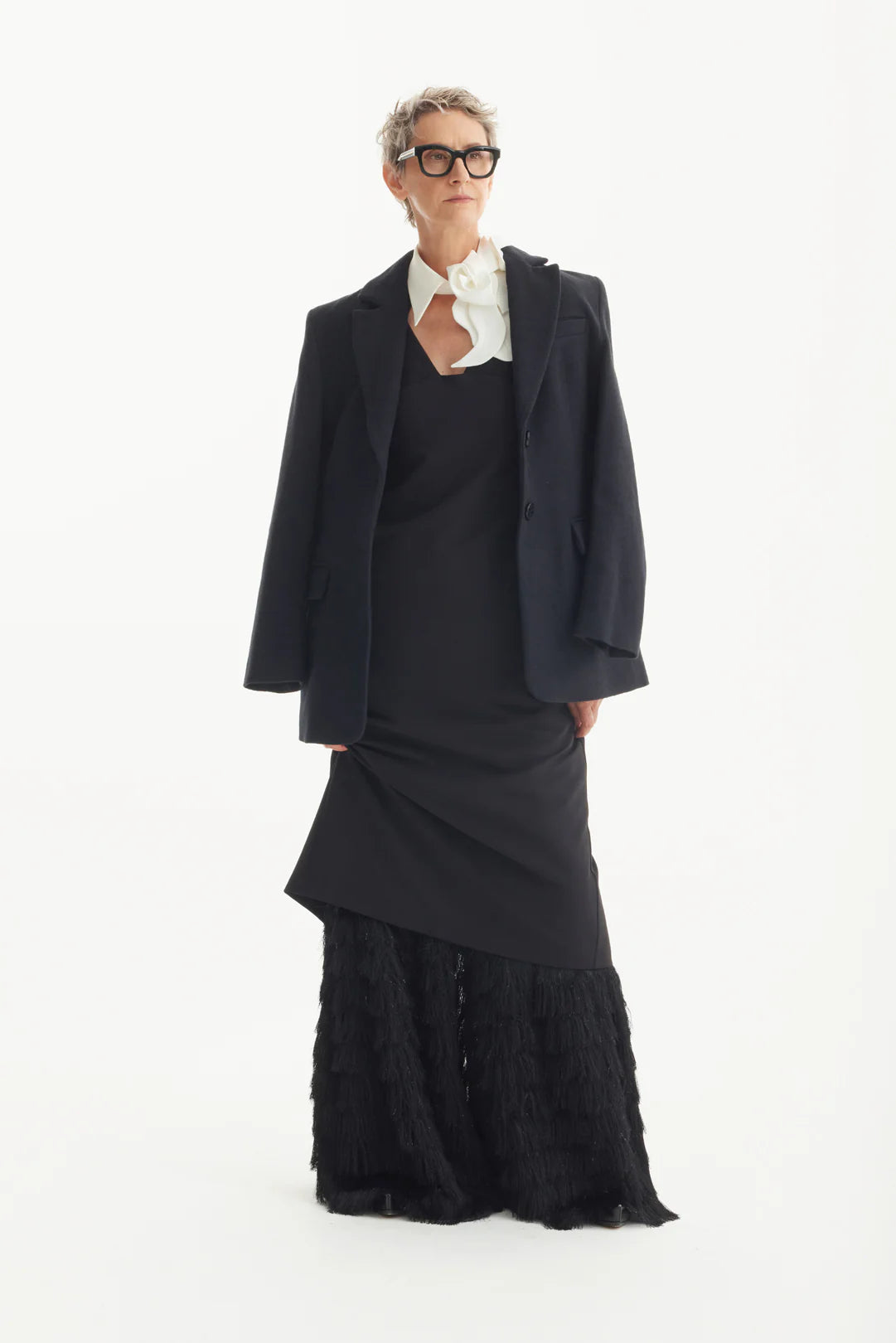 Descoperă îmbinarea perfectă dintre croiul clasic și detaliile contemporane în această rochie sheath neagră semnată Julia Allert. Creată pentru femeia de afaceri modernă, rochia este accentuată de un guler alb impecabil și o aplicație florală sculpturală, adăugând o notă rafinată și avangardistă. Confectionată dintr-un amestec premium de viscoză, rochia oferă o siluetă structurată și flatantă, cu buzunare ascunse practice și o finisare fină. Ideală pentru întâlniri de afaceri, ocazii formale sau evenimente de seară elegante, această rochie midi alb-negru îmbină stilul atemporal cu rafinamentul modern.
