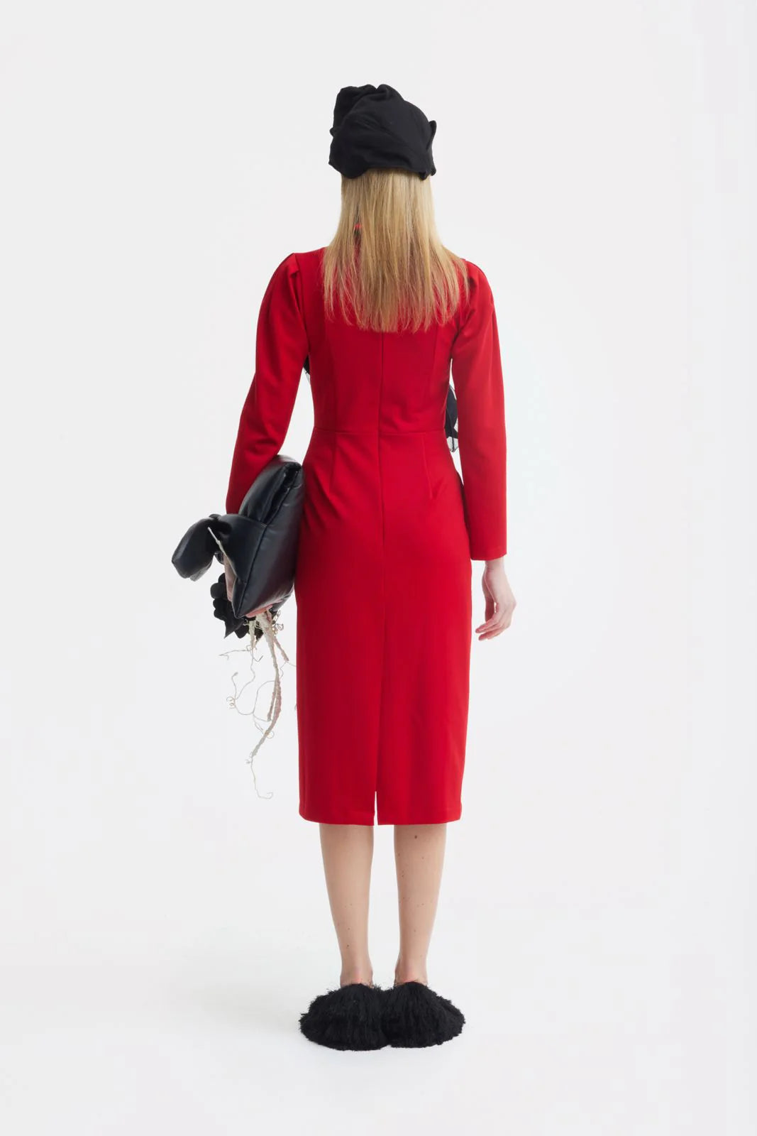 Perfectă pentru mediul business, ocazii de seară sau evenimente speciale, această rochie formală roșie îmbină rafinamentul atemporal cu o estetică îndrăzneață și curată. Poate fi stilizată cu pantofi clasici sau accesorii sculpturale pentru un look complet.