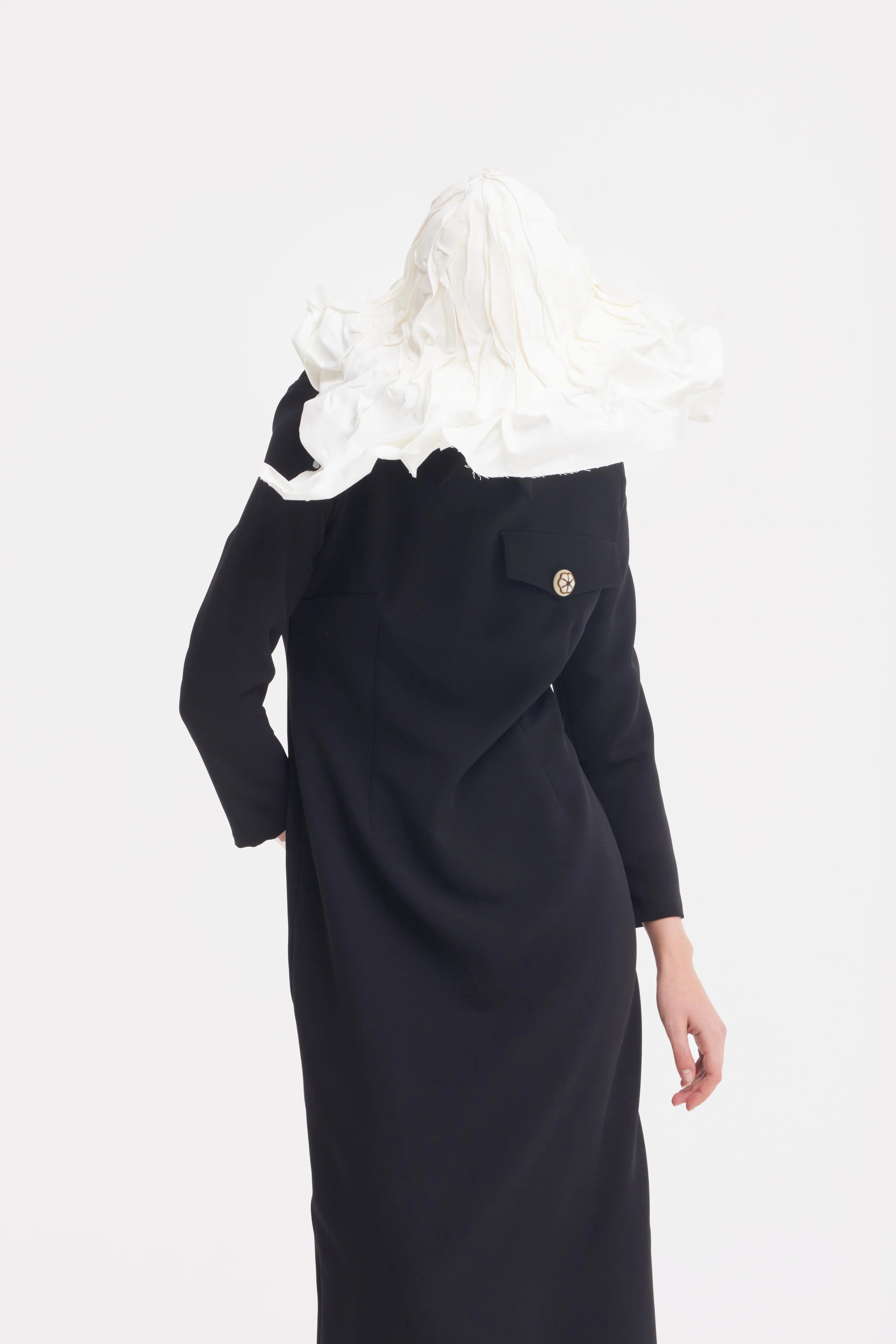 Rochie cambrată cu mâneci lungi și guler înalt – Negru: Această rochie îmbină perfect rafinamentul și confortul, evidențiind formele feminine prin croiala sa elegantă. Mânecile lungi adaugă versatilitate, făcând-o potrivită pentru orice sezon. Gulerul înalt conferă un aer sofisticat și elegant întregului ansamblu, creând un punct focal impresionant.