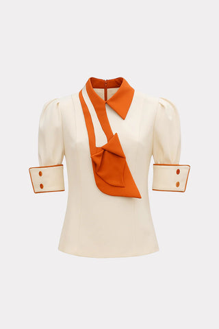 Bluza Statement cu guler și manșete – Fildeș și portocaliu ars