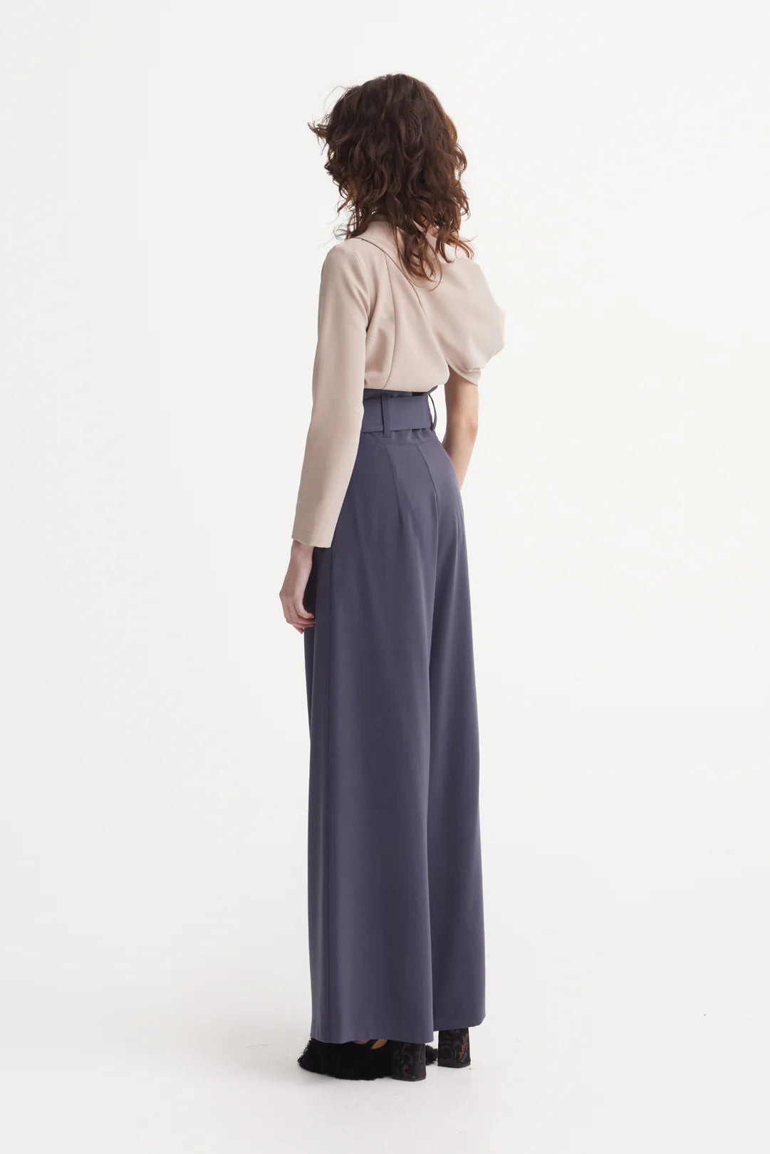 Faceți o declarație stilistică cu bluza cu guler drapat și o singură mânecă în bej, oferind o combinație unică de design contemporan și eleganță atemporală pentru diverse ocazii.