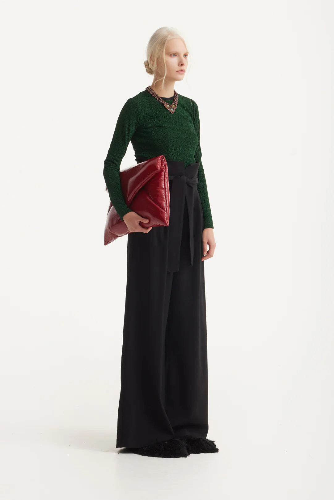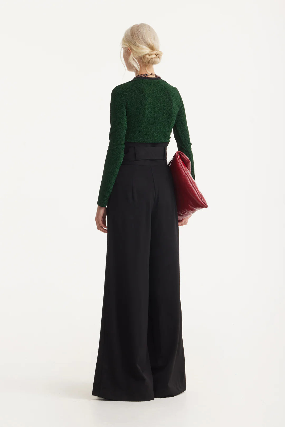Подходящие как для деловых встреч, так и для вечерних мероприятий, Черные Брюки с Высокой Талией и Широкими Штанинами — это идеальный выбор для тех, кто ценит сочетание современных модных тенденций и классической элегантности.
