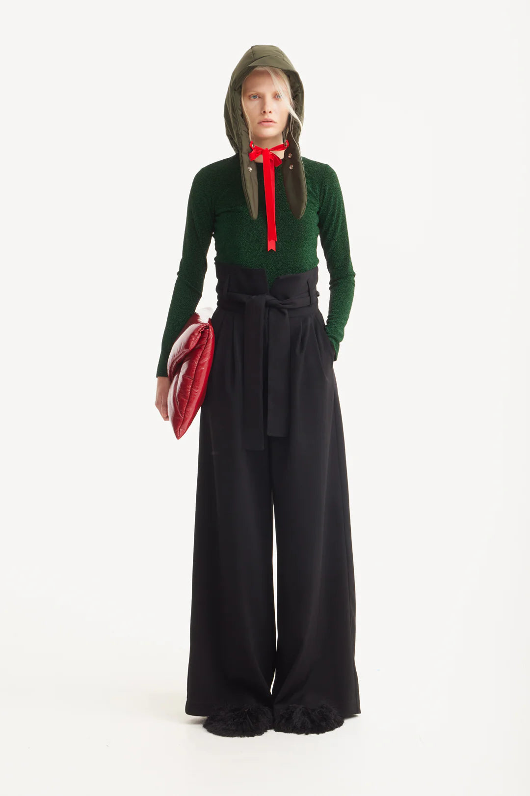 Повышайте свой стиль с нашими Черными Брюками с Высокой Талией и Широкими Штанинами — незаменимым элементом в вашем гардеробе. Эти брюки выполнены из плотной вискозы, что делает их идеальным выбором для прохладной погоды, сочетая тепло и элегантность.