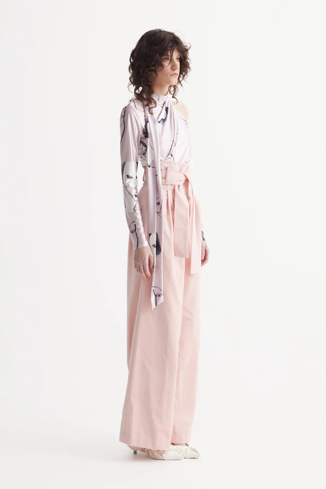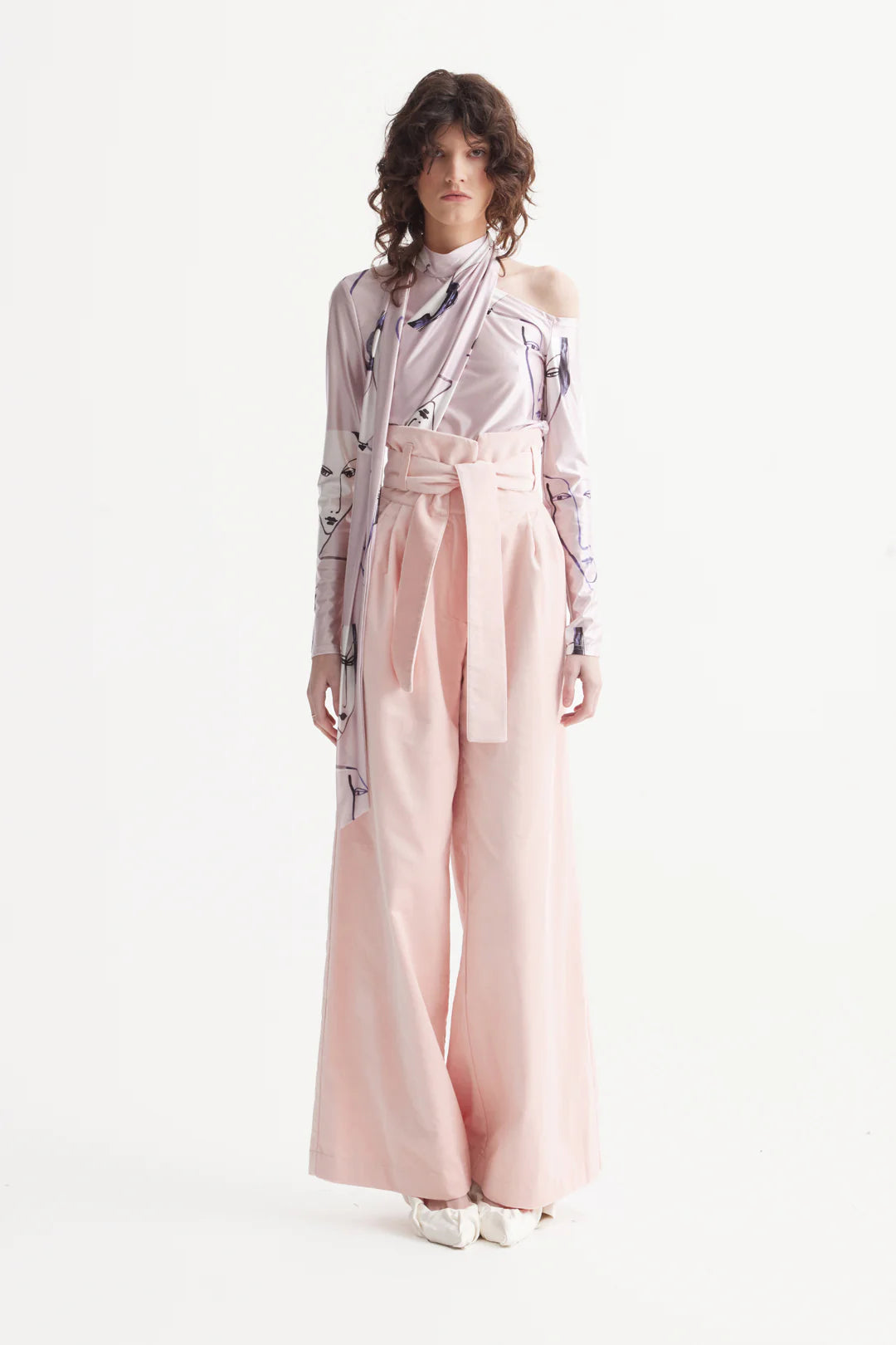 Мягкие, но при этом структурные, эти бархатные брюки с высокой посадкой в нежном персиковом оттенке воплощают сдержанную элегантность и тактильную глубину. Выполненные из ткани на основе вискозы, они обладают благородным блеском и дарят комфортное тепло, идеально подходя для прохладного сезона.