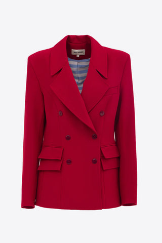 Классический двубортный жакет строгого кроя - красно бордовый