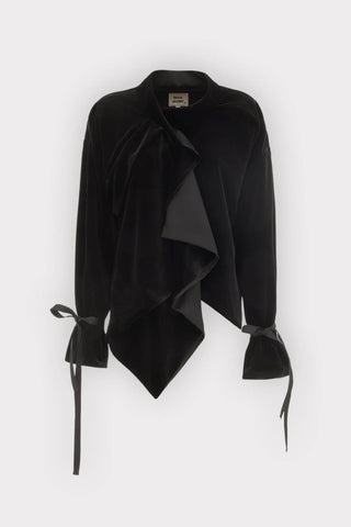 Вечерний бархатный жакет с запахом и шёлковой подкладкой - чёрный