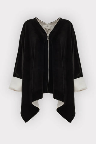 Свободная бархатная накидка-жакет на молнии — чёрная