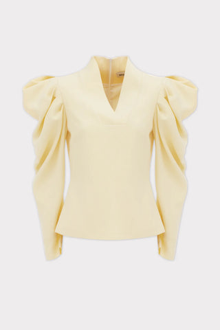 Скульптурная блуза с V-образным вырезом и эффектными рукавами - нежно-жёлтая