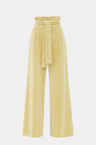 Бархатные брюки с высокой посадкой — пастельно-жёлтые