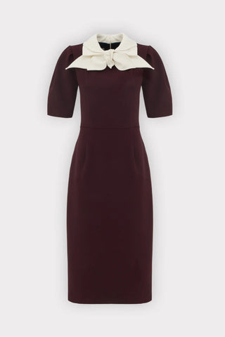 Миди-платье с контрастным воротником-бантом — бордовый с айвори