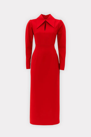 Дизайнерское прямое платье миди со шлицами на рукавах — красно-чёрное
