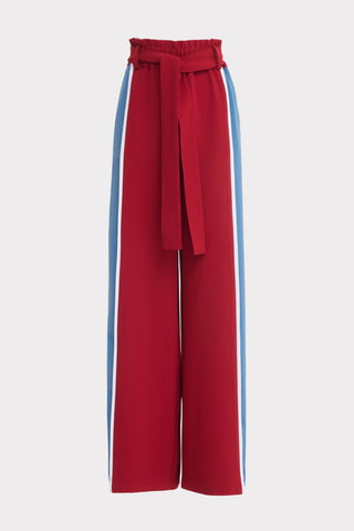 Брюки с высокой талией и широкими штанинами с поясом — бордовые