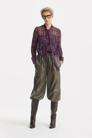 Дизайнерская прозрачная шифоновая блуза в клетку цвета бургунди
