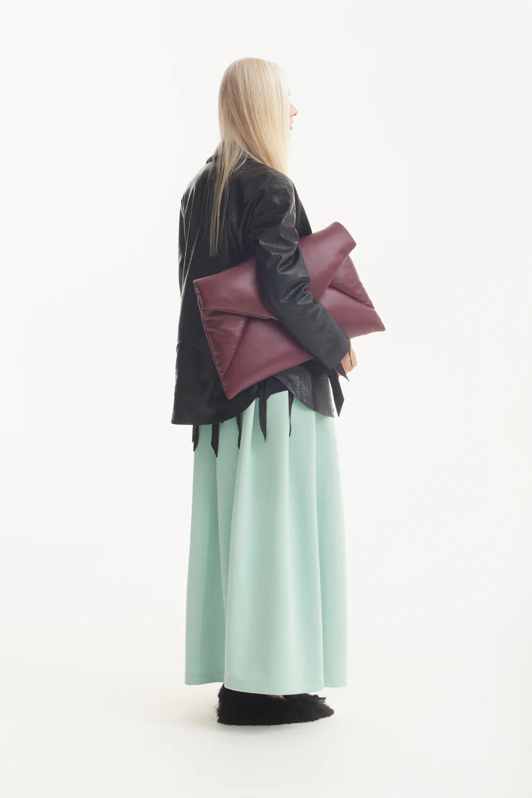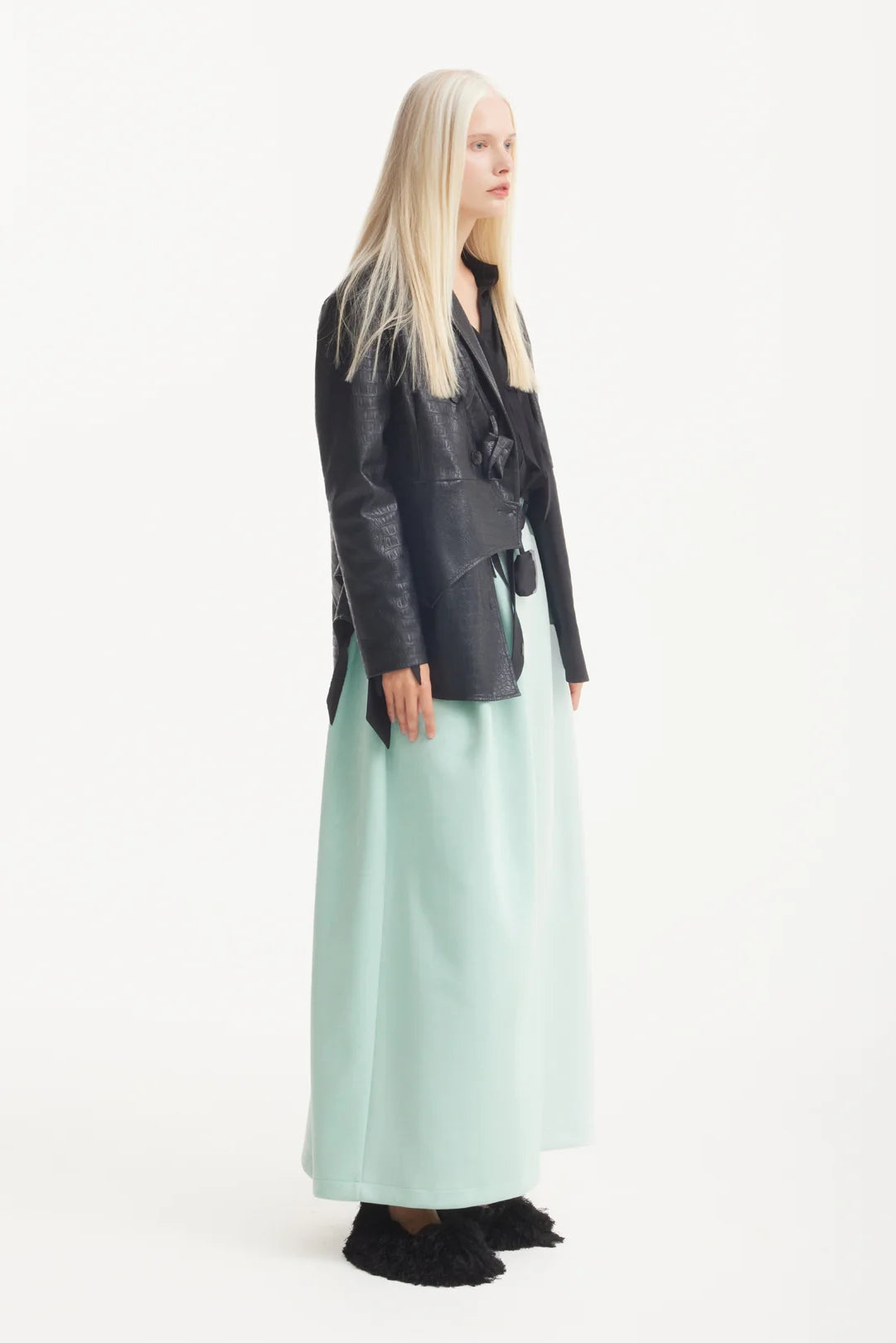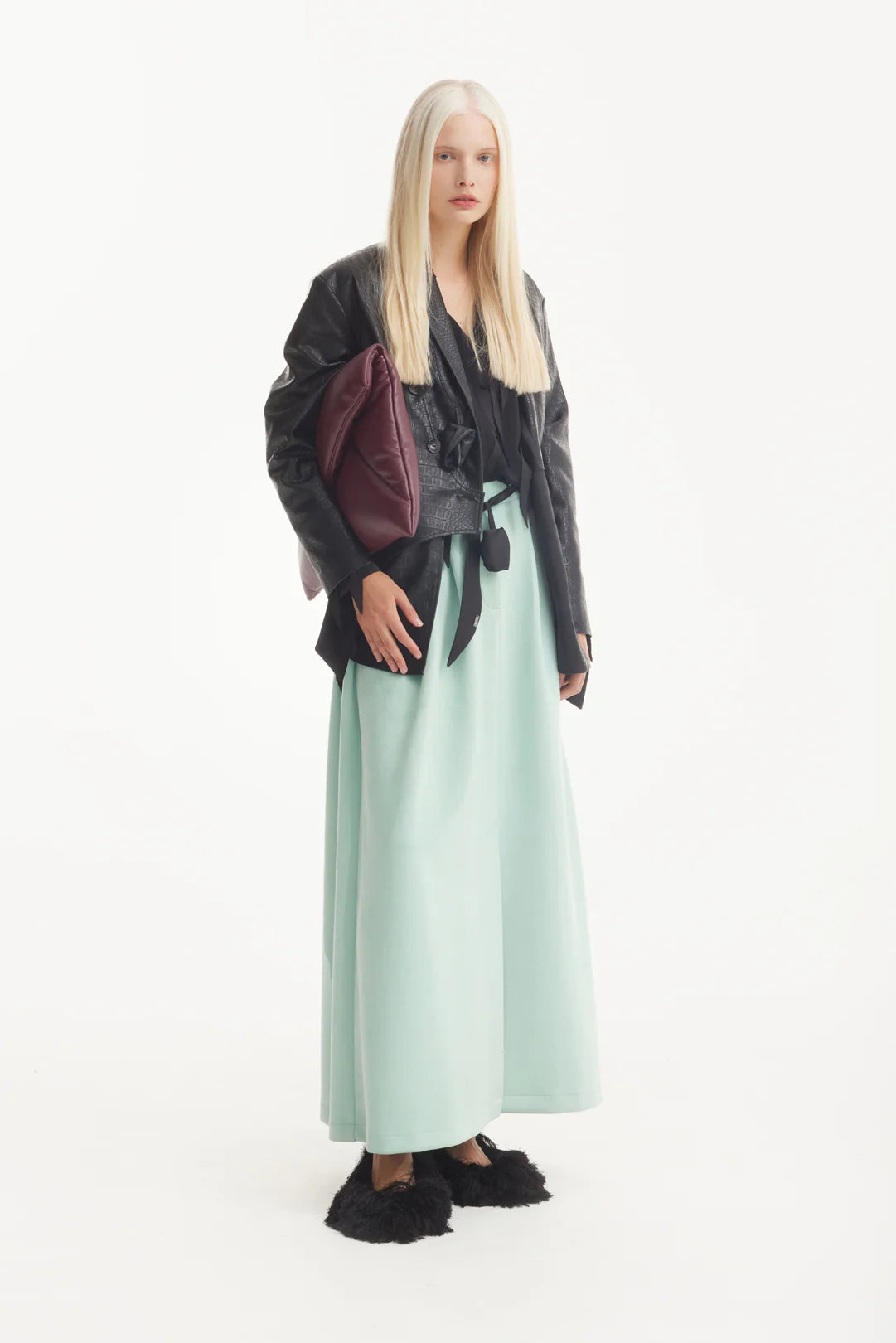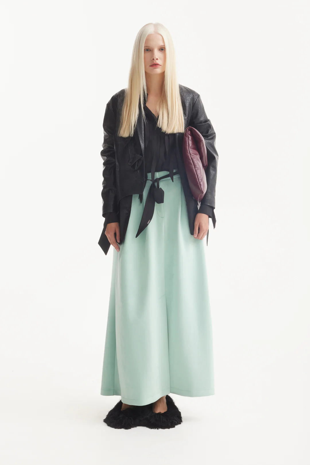Эта макси-юбка с высокой посадкой в оттенке мяты сочетает мягкость и структурность в минималистичном силуэте. Аккуратный разрез спереди добавляет лёгкости и свободы движений, а гладкая фактура замши придаёт образу утончённость и тактильную выразительность. Созданная, чтобы подчёркивать фигуру и двигаться вместе с вами, она идеально сочетается как с классическими рубашками, так и с расслабленными трикотажными изделиями. Этичное производство в Европе. Это изысканная базовая вещь для переходного сезона и повседневной утончённости.