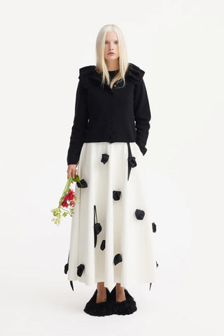 Умно-Кэжуальная Расклёшенная Юбка Миди с Цветочным Декором — Чёрно-Белая