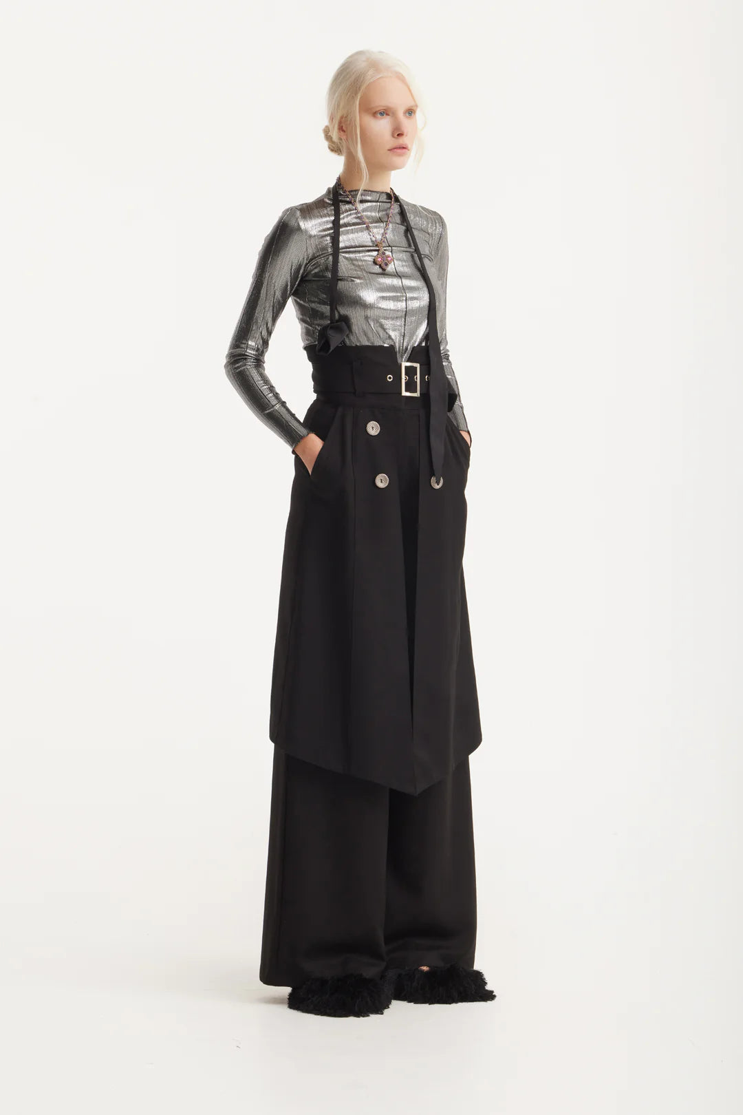 Особенной деталью этой блузы является шов спереди, который добавляет образу оригинальности и стильного акцента.